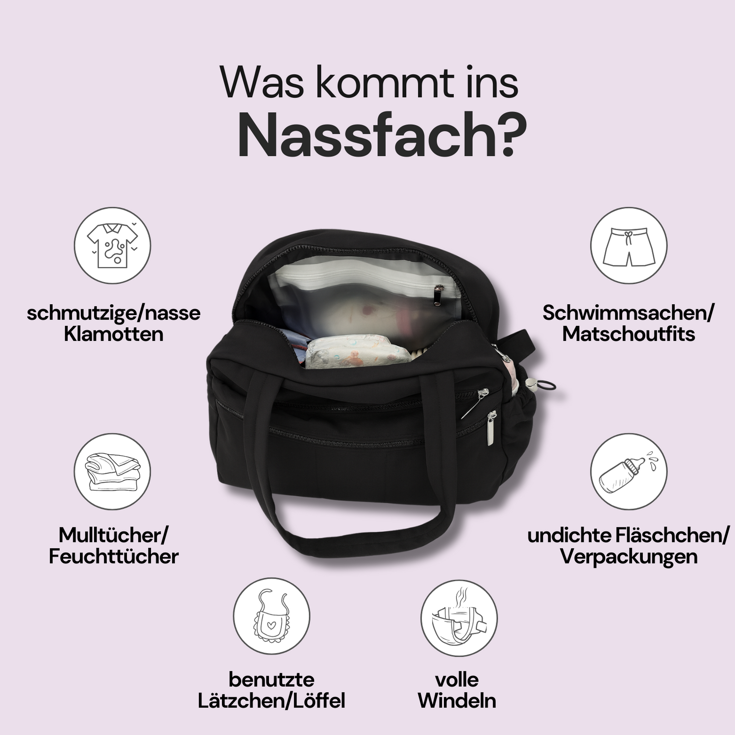 Damit hat alles unterwegs seinen Platz - egal ob volle Windel, nasse Kleidung oder die auslaufende Flasche.